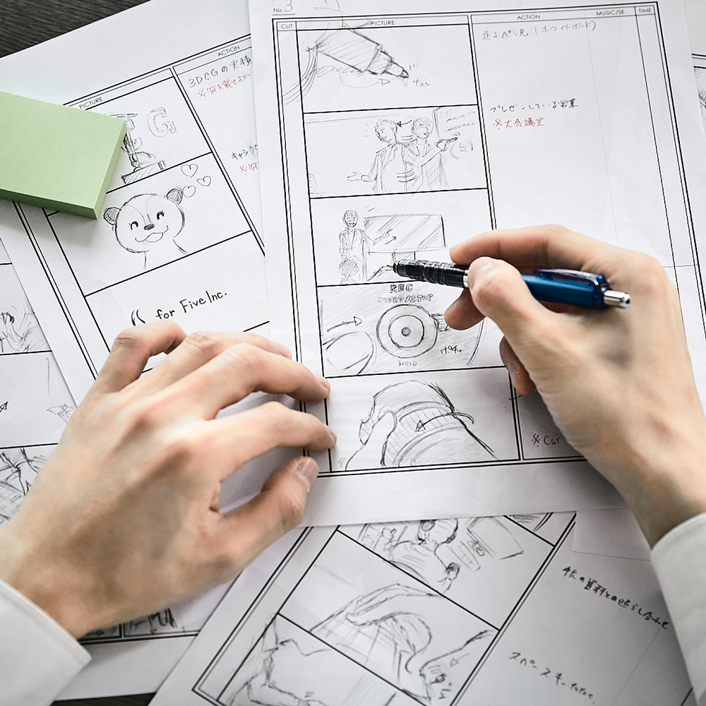 企画のクオリティに自信があるフォー・ファイヴでは、ラフコンテやシナリオアイディアのご提案を全て無料でご提供しています。アイディアの内容と価格面を合わせてご検討いただければ、きっとご期待に添えるもので制作へと進めることができると考えています!